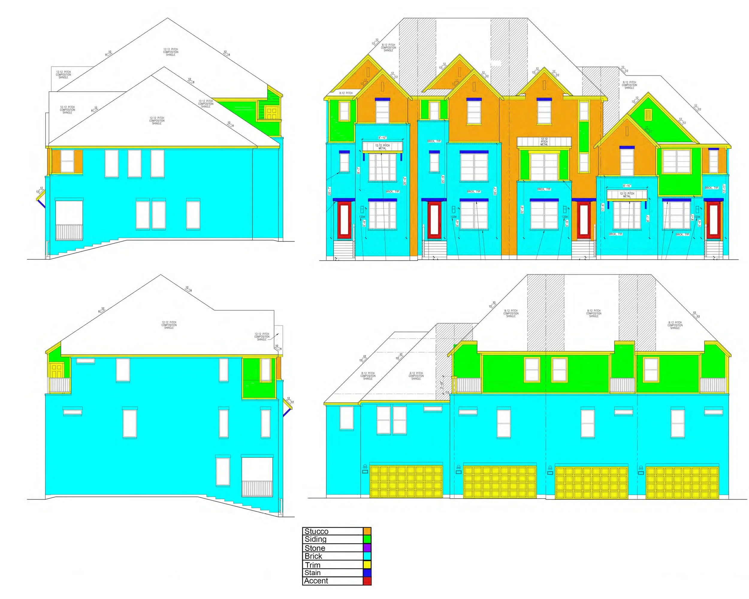 Elevation graphics and colored floor plans for clients’ marketing collateral.